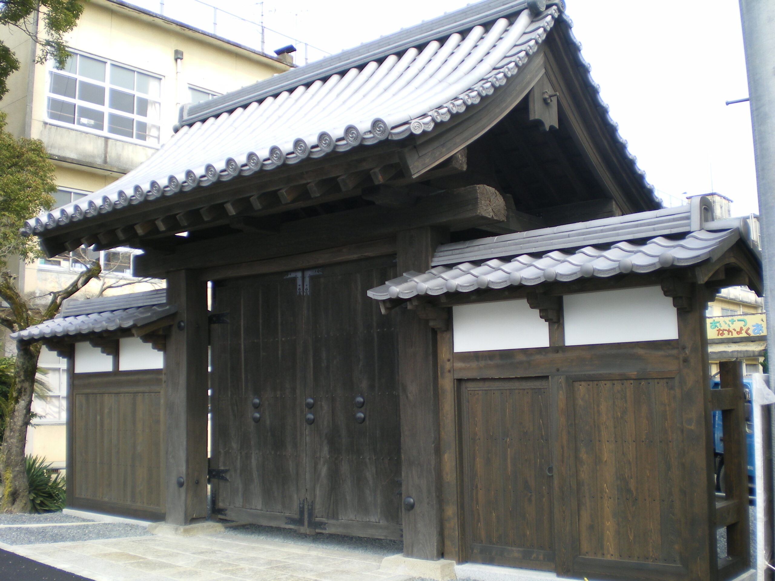 宮津城 太鼓門 投稿者 作成者: 大村工務店 投稿日 2021年4月26日 唯一残っている宮津城の城門、太鼓門。 90年前に3回目の移設で宮津小学校裏門に建っていたものを今回4回目の移設で腐朽部分を修復し、元来あった場所である小学校正門に移設しました。 所在地 :京都府宮津市構造規模:木造門施工 :(株)大村工務店竣工 :2010年工事概要:移設修復工事 ← 智源寺庫裏 改修 → 旧由良農協跡 健康足湯サロン