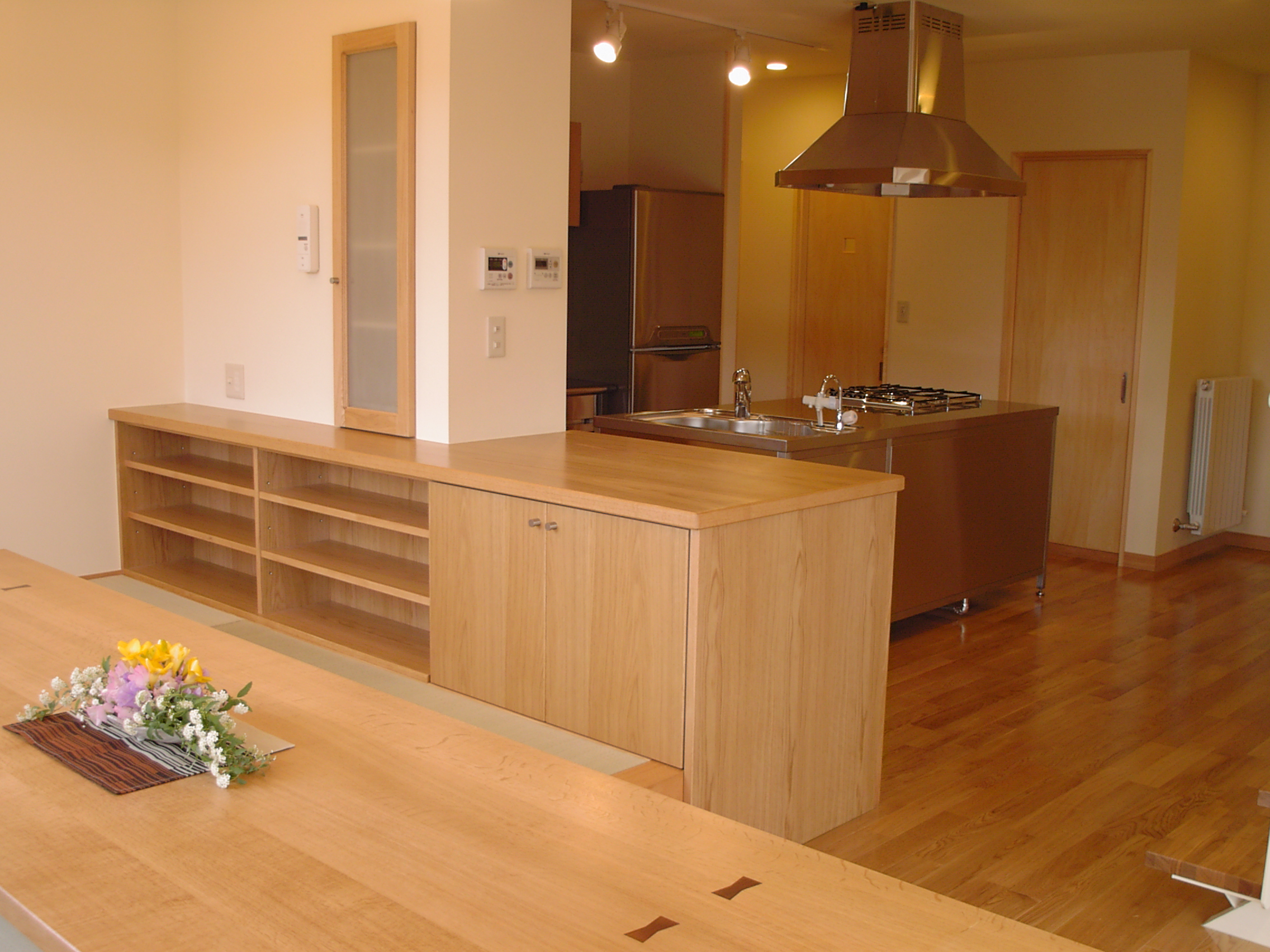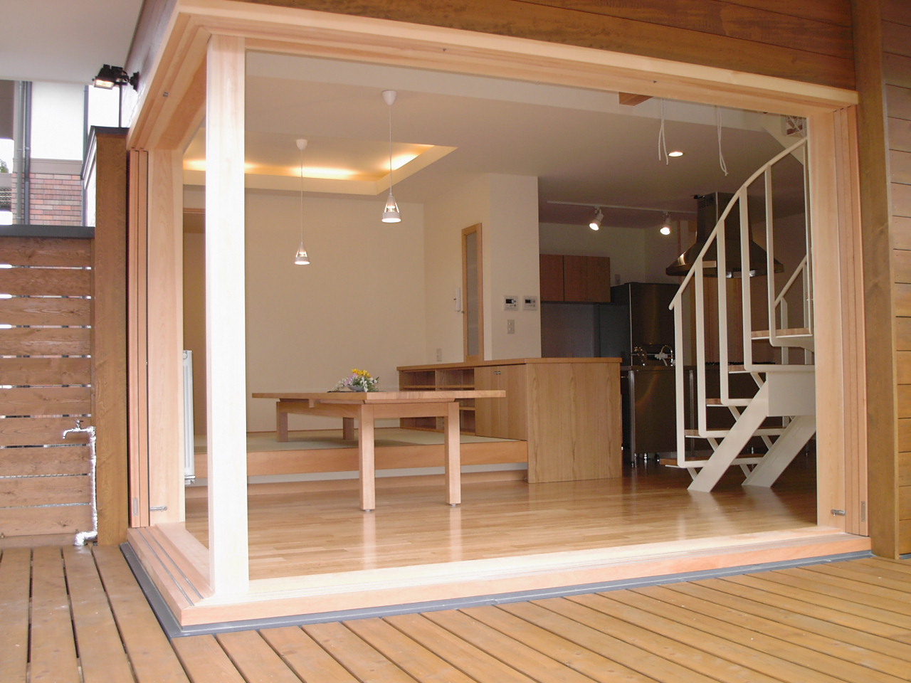 つながりのある家 新築 投稿者 作成者: 大村工務店 投稿日 2021年4月26日 高塀で囲ったウッドデッキから、リビング、ダイニング、そしてキッチンへと一体となった空間でつながっている家。 又、階段室の吹抜を通じて外と1階と2階、ロフトまでもがつながった空間となっています。 設計 :(株)大村工務店一級建築士事務所所在地 :京都府宮津市構造規模:木造2階建用途 :専用住宅施工 :(株)大村工務店竣工 :2003年工事概要:新築工事企画監修:ハーモニーライフ ← 工房のある暮らし 新築 → 丹後荒山の家 新築